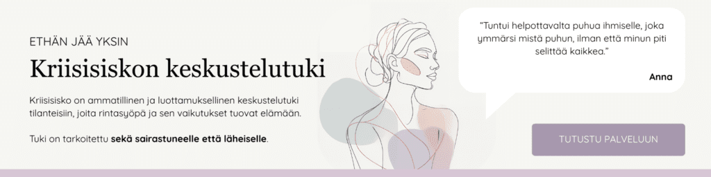 Sokki on rintasyöpädiagnoosin jälkeen normaali ja suojaava reaktio, ei merkki heikkoudesta tai mielenterveyden pettämisestä. Kun ajattelu sumenee ja olo tuntuu epätodelliselta, keho tekee juuri sitä, mitä sen pitääkin. Tässä vaiheessa riittää, että pysyt turvassa ja annat itsellesi aikaa. Selkeys palaa askel kerrallaan.